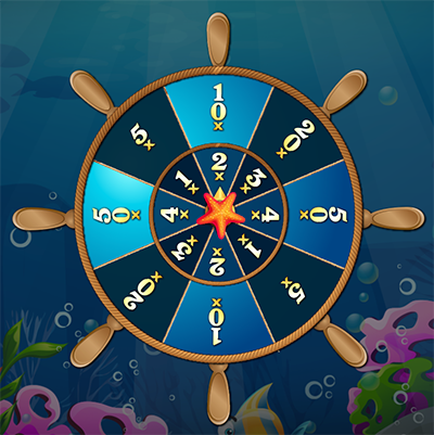 will trigger bonus game “Steer the helm!”when the result is tallied. - The helm has two wheels, and the result will multiply the odds of the two wheels for prize payout.